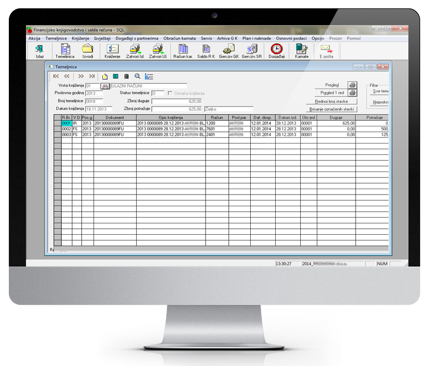 Aplikacija Financijsko knjigovodstvo i salda računa namijenjena je svim poduzećima za vođenje glavne knjige (financijsko knjigovodstvo) i knjige salda računa poslovnih partnera (kupaca i dobavljača). Aplikacija je organizirana tako da može voditi knjige za trgovačka društva, neprofitne organizacije ili proračunsko knjigovodstvo.