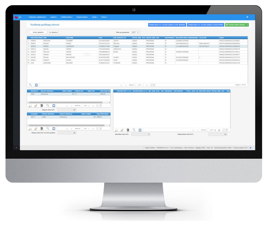Aplikacija iKE - Kadrovska evidencija omogućava praćenje podataka o djelatnicima. Prate se svi propisani podaci i podaci potrebni za obračun plaća.