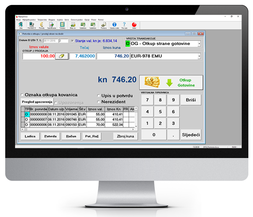 - Podržava uplate i isplate u kunama i stranoj valuti